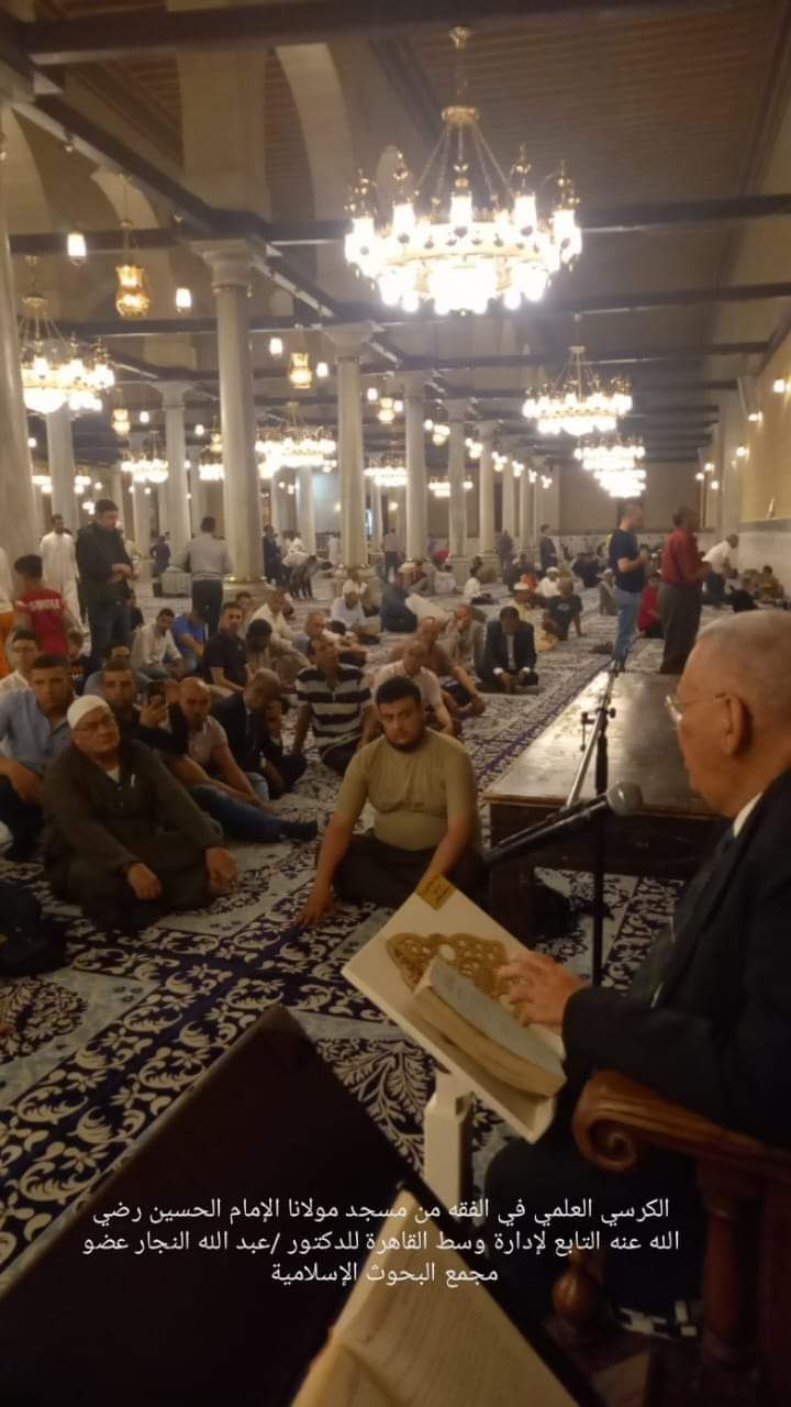 وفي مسجد السيدة نفيسة (رضي الله عنها) بالقاهرة، عقد الدكتور محمد أبو هاشم أستاذ الحديث وعلومه ونائب رئيس جامعة الأزهر الأسبق كرسي الحديث، حيث قام بشرح كتاب: “الأذكار للإمام النووي”.