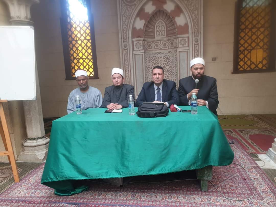 جاء ذلك بحضور الدكتور منير محمد إبراهيم حمدين مدرس اللغويات بكلية اللغة العربية، والدكتور محمود نصر الدين محمد مسئول شئون القرآن الكريم ومدير مركز المحفظين وعدد 80 من الأئمة والواعظات.