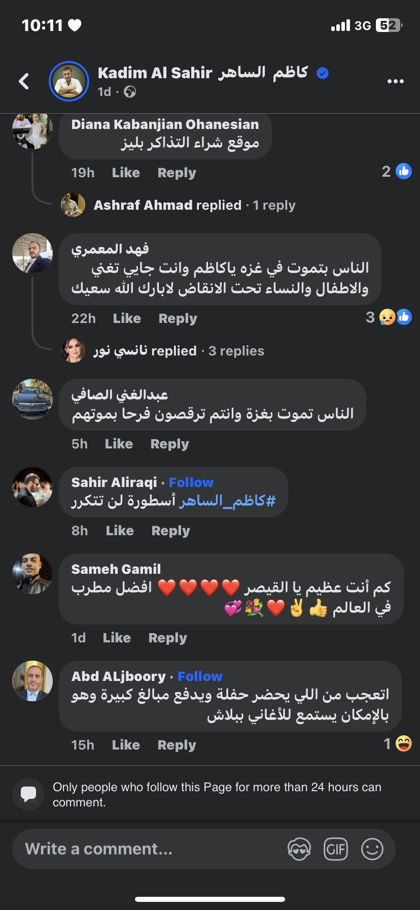 الجمهور يتهم كاظم الساهر بتجاهل أحداث غزة: الناس تموت وانتم ترقصون فرحا بموتهم