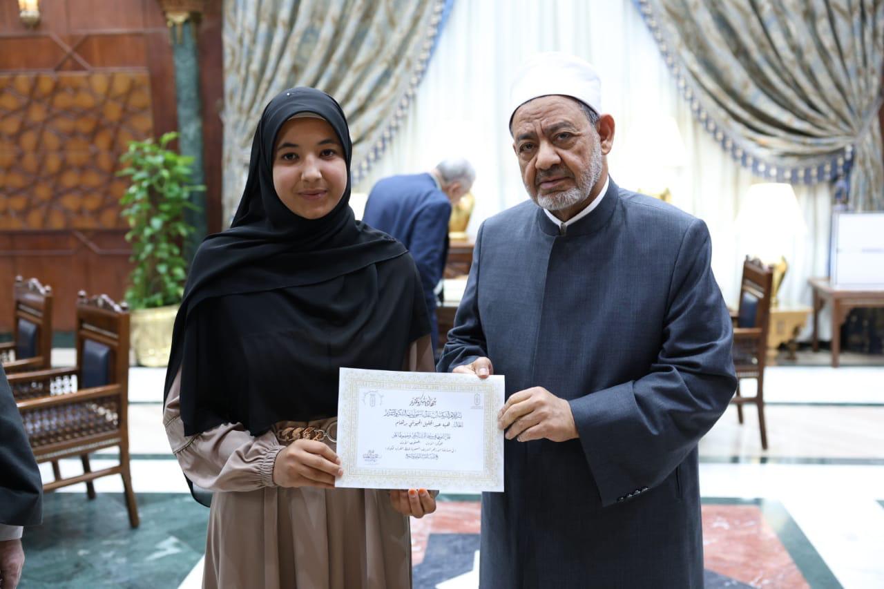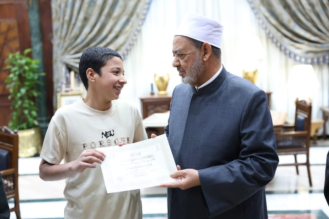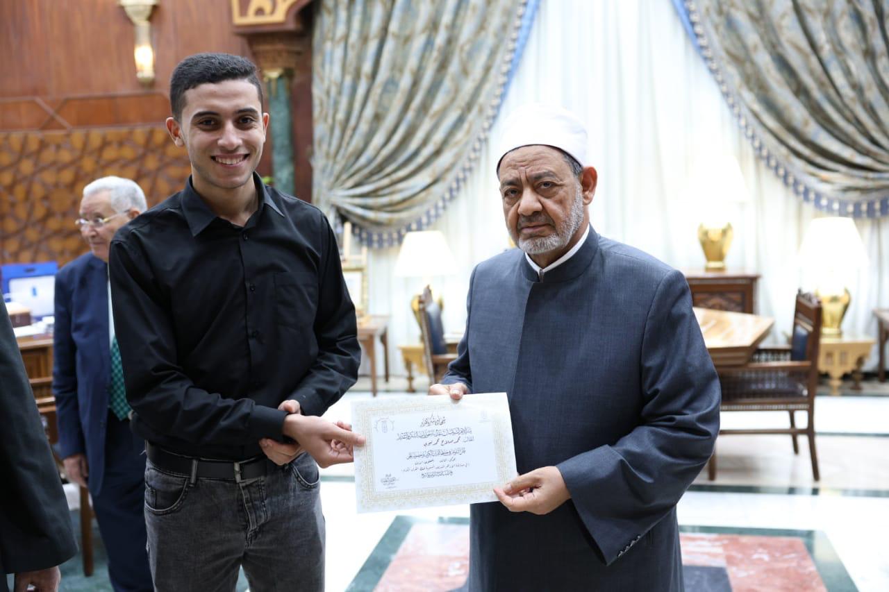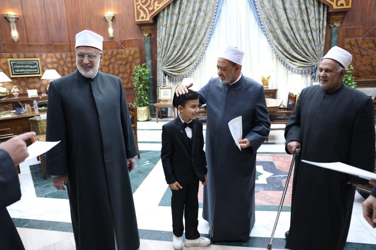 كرَّم فضيلة الإمام الأكبر الدكتور أحمد الطيب، شيخ الأزهر الشريف، أوائل النسخة الحالية لمسابقة الأزهر السنوية لحفظ القرآن الكريم، اليوم الأحد، بمقر مشيخة الأزهر.