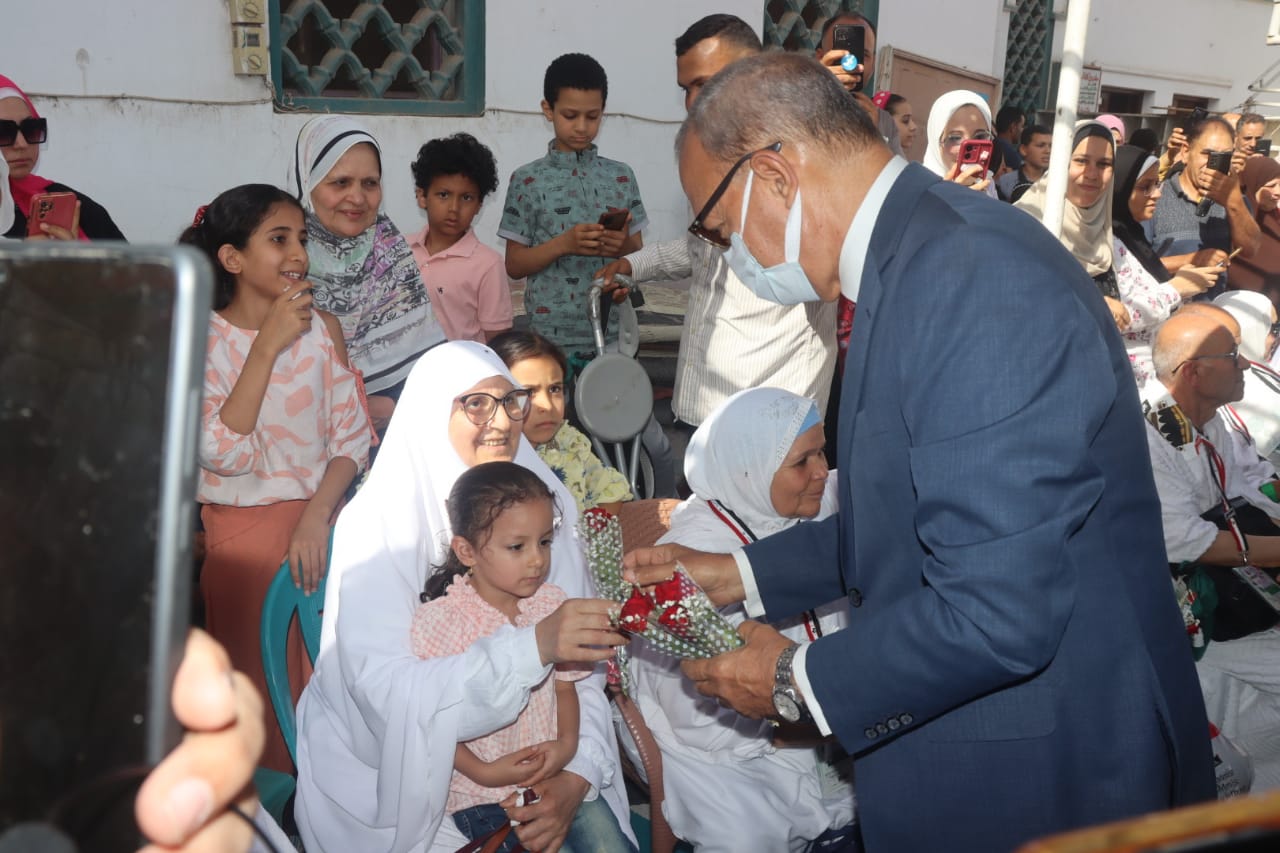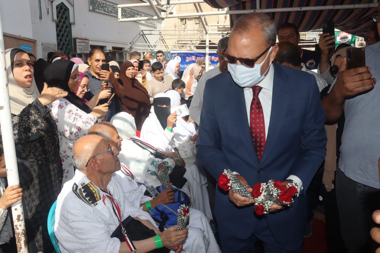 محافظ القليوبية يودع حجاج الجمعيات قبل سفرهم لبيت الله الحرام