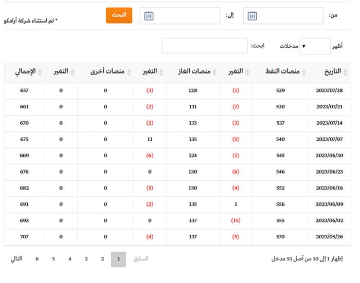وأظهرت بيانات شركة “بيكرهيوز”، أن عدد منصات التنقيب عن النفط تراجع منصة واحدة عند 529 منصة خلال الأسبوع الجاري، وهو أدنى مستوى منذ الأسبوع المنتهي في الثامن عشر من مارس عام 2022.