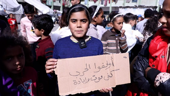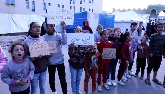 أطفال رفح النازحون يطالبون بحقهم في الحياة ويناشدون العالم لوقف الإبادة الجماعية