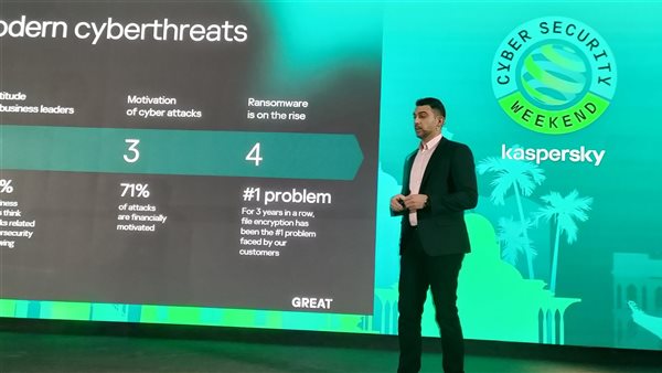 تابع حسبيني أنها تمطر تهديدات تتعلق بالإنترنت وخارج الإنترنت وفي شركة كاسبرسكي نشهد العديد من التهديدات، مشيرا إلى تعرض المنطقة إلى العديد من الهجمات سواء القطاع المصرفي.