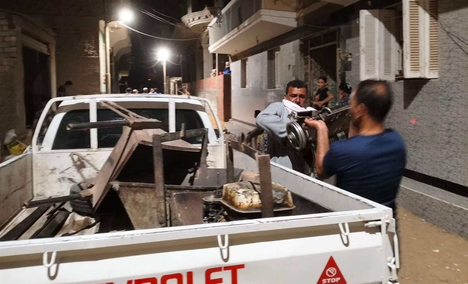 إزالة التعديات ومصادرة معدات ومواد البناء بمركز طامية