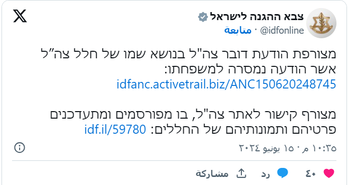 إلى ذلك، أكد الجيش الإسرائيلي في بيان نشره على موقعه الرسمي ارتفاع عدد القتلى في صفوفه إلى 652 منذ السابع من أكتوبر 2023.